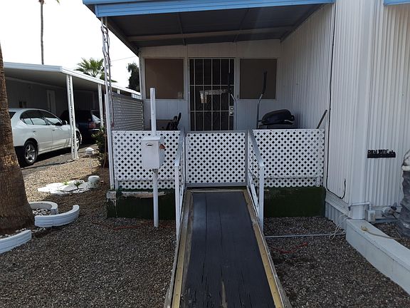 You will enjoy the amount of space in this 2 bedroom 2 bathroom home, a super cute home, and a bargain to boot! This adorable place could be either your primary home or your Arizona getaway! Boasts an Arizona room and 2workshops! The interior of this darling l place has been well taken care of. Live in a great 55+ park with many amenities to enjoy. Heated pools and spas, or enjoy your days playing pool or reading from the vast library. The walking and biking path winds through the community. The water and sewer are also included in the lot rent! Garbage pickup is only $12 a month! This place is bargain paradise! Newly painted inside and out! Beautiful new tub/shower combo and new sink in the bathroom. Walk-in closet in the master bedroom! The park is laying new streets! Must qualify with the Treehouse Communities for lot rental. Water and Sewer are included. Trash is an extra $12.00 per month. The lot rent base is $586.00 + $13.76 tax + $12.20 trash = $611.96 This is a 55+ community, with NO HOA fees! Too good to be true? Come and see for yourself!