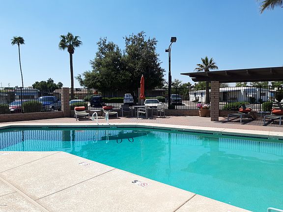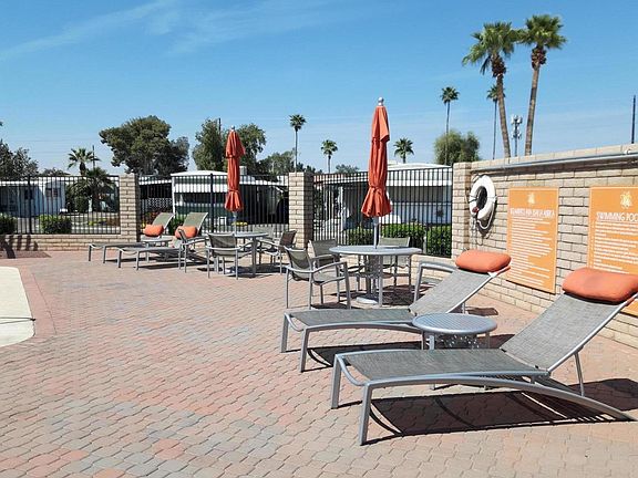 PRICE REDUCED!! You will enjoy seeing this spacious 2 bedroom 1 bathroom home, a super cute home, and a bargain to boot! This adorable place could be either your primary home or your Arizona getaway! Boasts a den and workshop! The interior of this darling little place has been well taken care of. Live in a great 55+ park with many amenities to enjoy. Heated pools and spas, or enjoy your days playing pool or reading from the vast library. The walking and biking path winds through the community. The water and sewer are also included in the lot rent! Garbage pickup is only $12 a month! This place is bargain paradise! Newly painted inside and out! Beautiful new tub/shower combo and new sink in the bathroom! Must qualify with the Treehouse Communities for lot rental. Water and Sewer are included. Trash is an extra $12.00 per month. The lot rent base is $556.00 + $13.07 tax + $12.00 trash = $581.27. This is a 55+ community, with NO HOA fees! Too good to be true? Come and see for yourself!