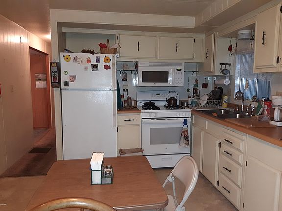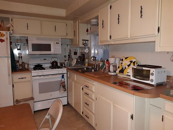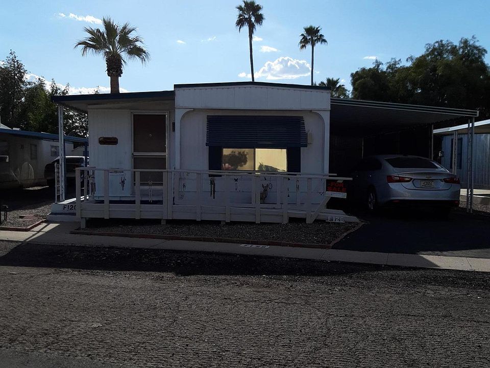 You will enjoy seeing this spacious 2 bedroom 1 bathroom home, a super cute home, and a bargain to boot! This adorable place could be either your primary home or your Arizona getaway! Boasts a den and workshop! The interior of this darling little place has been well taken care of and has an addition that gives it a spacious feel with the walk-in pantry and den. Live in a great retirement park with many amenities to enjoy. Heated pools and spas, or enjoy your days playing pool or reading from the vast library. The walking and biking path winds through the community. The mobile had a new air conditioner/heater installed in 2014. The water and sewer are also included in the lot rent! Garbage pickup is only $12 a month! This place is bargain paradise! The bookshelf in the dining area does not convey. Must qualify with the Treehouse Communities for lot rental. Water and Sewer are included. Trash is an extra $12.00 per month. The lot rent base is $556.00 + $13.07 tax + $12.00 trash = $581.27. This is a 55 plus community, with NO HOA fees! Too good to be true? Come and see for yourself!