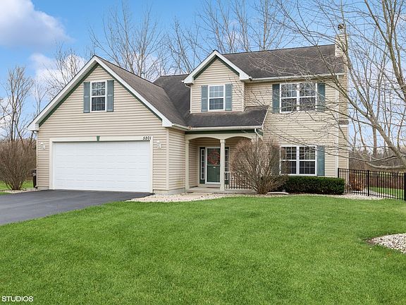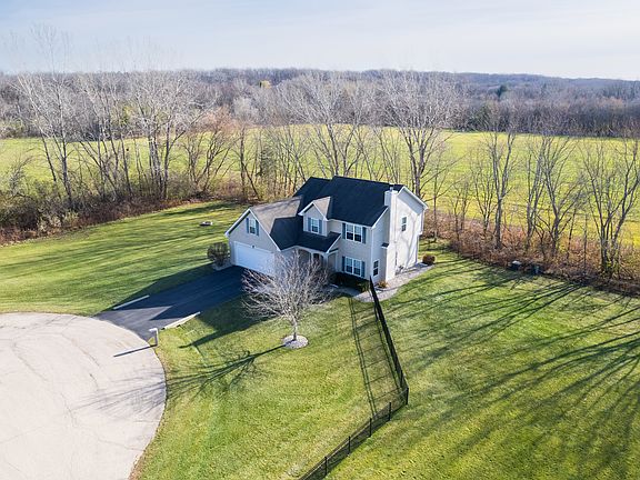 Welcome to this stunning custom-built home nestled on almost an acre of picturesque land at the end of a quiet cul-de-sac. As you step inside, the foyer opens to the living room with a wood-burning fireplace, creating a cozy ambiance for your favorite moments. The seamless flow continues into the dining room, highlighted by 9' ceilings and crown molding, making it an entertainer's dream! The well-appointed kitchen offers an abundance of cabinets and granite countertops. The main level also features a radiant heated floors throughout, mudroom and updated half bath. Upstairs, discover a spacious primary suite with a tray ceiling, dual walk-in closets, and a gorgeous, updated bath with dual sinks and a separate shower! Two additional bedrooms, bonus room (what would you use this space for? 4th bedroom? Office? Workout Room?), a hall bath, loft and a convenient laundry room complete the second level. But there's more! This home sits on a premium double lot with breathtaking views, especially from the amazing patio. Enjoy remarkable sunsets and the tranquility of the newly installed rod iron fence, providing peace of mind for kids and pets. The oversized heated 2.5 car garage offers an 8x18' door, an additional area for storage or a workshop and a convenient service door to access the backyard with ease! Richmond offers an award-winning school district, a charming downtown with excellent shops and restaurants, outdoor recreation, and proximity to shopping and Lake Geneva. Updates to this home: Carpet (2023), 2nd Level Chandelier (2023), Primary Bath Renovation (2022), Full Bath Update (2022), Furnace (2022), AC Unit (2022), Fencing (2021), Flooring in 4th bedroom/bonus room (2020), Driveway (2020), Kitchen Countertops (2019), Main Level Bathroom Update (2018), Water Heater (2018), Don't miss the opportunity to call this home!