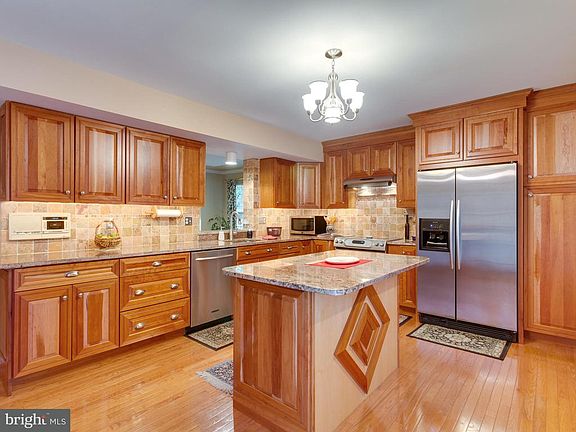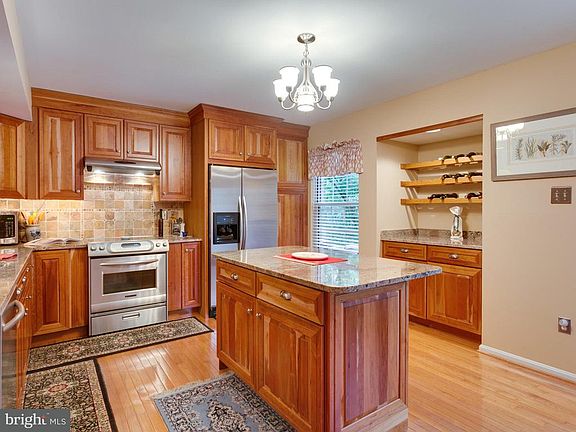 Gorgeous EOG! Wd floors all levels. Culinarian's gourmet Kit. w/lots of granite countertop, island, upgraded cabinets, pantry cabinet, tile backsplash, SS appli, wine bar & built-ins. 2 FP's. MBR w/vaulted ceiling, lrg closet. MBA whirlpool tub, sep shower, dbl bowl van. Rec Rm, 1/2 bath, built-ins, walkout, laundry/storage rm. Beautiful deck & brick patio. Lush landscaping & view! New Roof, '18!
