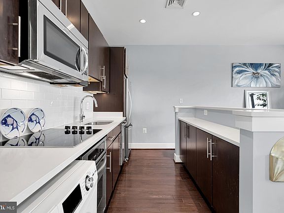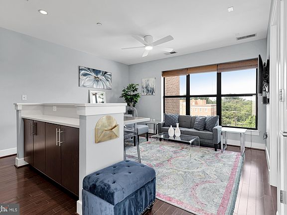 This lovely 1 bed, 1 bath unit at The Harrison in Friendship Heights is one of a kind! The unit features hardwood floors, large windows, recessed lighting and a parking space. The fully-equipped kitchen offers stainless steel appliances, plentiful cabinet storage and a breakfast bar with a custom folding dining table which seats up to 5 guests. The kitchen naturally opens to the cozy and bright living room, perfect for entertaining! Building amenities include a landscaped courtyard including water features, grills, a fire pit, bike racks and a parking garage. Pets are allowed as well! In close proximity to the Friendship Heights Metro Station, Rodman's, Bloomingdale's, Junction Bistro, York Flowers and Whole Foods - endless dining and shopping options. This unit is perfect for any first-time homebuyer, investor, or anyone simply looking for a pied-a-terre with easy access to downtown DC. Ready to call this place home? All square footage and dimensions, though compiled from sources deemed reliable, are estimates.