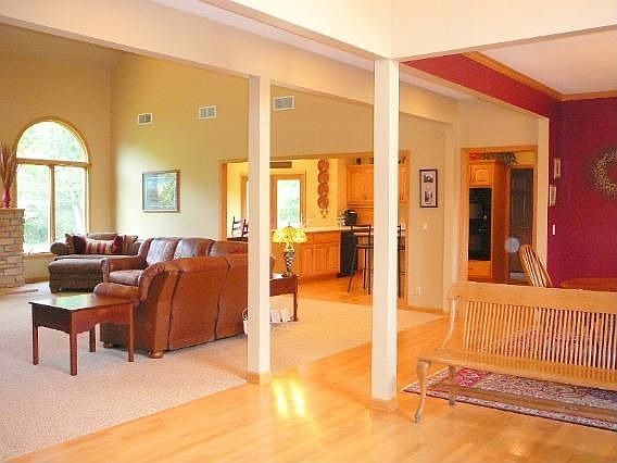 All brick built by Signorin on a choice acre lot abutting the Root River. Expansive floorplan with two-story greatroom, pretty windows, and fireplace open to kitchen. Lots of cabinetry, Corian counters, and breakfast bar. First floor office with French doors, built-ins and master bedroom suite with private bath and whirlpool, three spacious bedrooms up and large family bath. Six-panel doors,crown molding and hardwood floors,forty four by twenty five rec room;dayligt windows