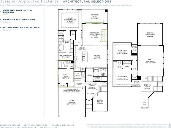 The Mirabeau's welcoming covered porch and stunning two-story foyer open onto the soaring two-story great room and desirable covered patio beyond. The well-appointed kitchen overlooks a bright casual dining area, and is highlighted by a large center island with breakfast bar, plenty of counter and cabinet space, and ample pantry. The majestic primary bedroom suite is enhanced by a beautiful tray ceiling, gigantic walk-in closet, and deluxe primary bath with dual-sink vanity, large soaking tub, luxe shower with seat, linen storage, and private water closet. Central to a generous flex room, secondary bedrooms feature roomy closets and shared full hall bath with separate dual-sink vanity area. Additional highlights include a versatile office off the foyer, convenient powder room and everyday entry, centrally located laundry, and additional storage. Disclaimer: Photos are images only and should not be relied upon to confirm applicable features.