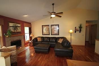 open floor plan & cathedral ceiling lends to the spaciousness you feel when inside. Incredible setting with huge park and pond just out your backdoor. Gorgeous blend of tile, cherry & maple floors. Gas fireplace, huge deck, professional landscaping, lower level retreat with family room, rec room is great for the pool table, bar, exercise room or office. New roof in (06), water heater (08), garage door & opener (09), countertop (09), appliances (08) & more.