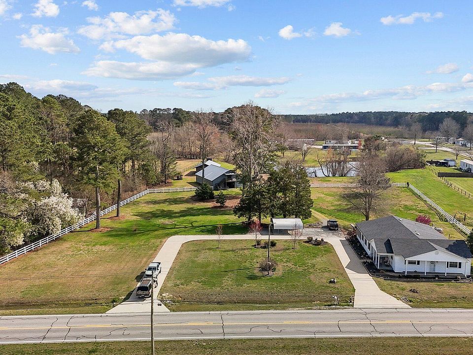 Discover the epitome of country living at this captivating property nestled along Highway 42 just East of Wilson, North Carolina. Boasting 4.86 acres of pristine country living, this property offers a perfect blend of outdoor amenities and nearby city amenities. As you drive up the concrete governor's driveway, you're greeted by sprawling landscape, buildings, and space. Featuring a 1-acre pond, perfect for fishing enthusiasts to spend leisurely afternoons by the water's edge. A barn awaits with 6 spacious stalls, an upstairs loft, and a concrete area at the back, ideal for a workshop or shelter for animals. Next to the barn, a small greenhouse provides ample space for cultivating your favorite plants and flowers. Step outside and unwind in the rustic outdoor screen shelter, complete with custom tarps to shield from the elements, a bathroom, kitchen, and a grand brick fireplace. A firewood shelter nearby ensures you'll have plenty of fuel for cozy fires on chilly nights. The property is thoughtfully fenced, with a wire fence along the back and a white vinyl fence enclosing three-quarters of the house lot area.