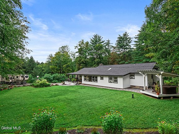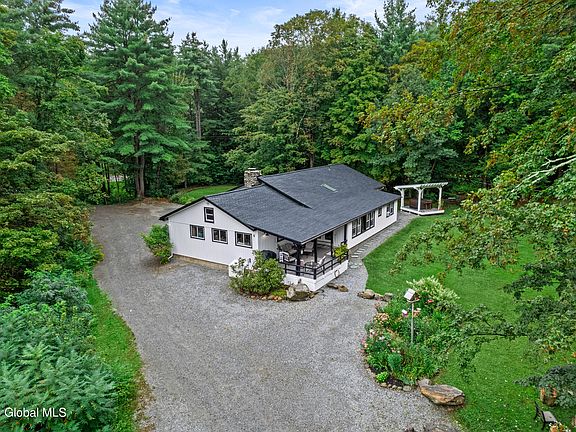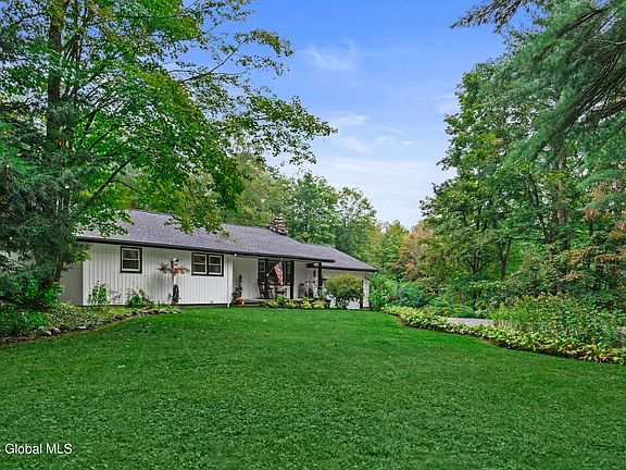 Secluded serenity, on 32 acres, offers an enchanting escape! A captivating retreat, with 3 beds, 3 full baths, & 1930sqft. Refinished original wide plank floors. Renovated kitchen, inc plumbing &elec. White cabinetry with soft close cabinets & drawers. Wood plank ceiling, exposed beams, & a stone wall that embraces a wood burning FP. Living room boasts french doors, leading to an inviting rear porch. Oversized walk-in closet/dressing area in primary suite. Baths feature custom wood countertops & wainscoting. Separate renovated cottage with 2 beds,1 bath! A guest house or rental opportunity. Updated kitchen with granite countertops & open shelving. The dining & living area has exposed wood beams & shiplap walls. Cozy up to the FP with stone surround. New roof, new siding,& 2-car garage!