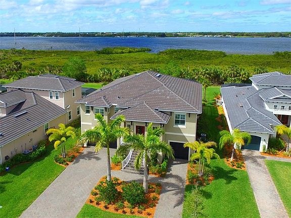 Spectacular coastal RIVERFRONT ESTATE commands endless water views. Model perfect Savannah offers modern spin on split-level living w/stunning dual entry staircases opening to impressive foyer. 1st level perfect for multi-gen family w/2bdr/2ba, + flex area. Step through disappearing sliders to tropical outdoor living space to refresh in the htd pool/spa & entertain al fresco on paved lanai. 3-car garage & utility room. 2nd level Breathtaking River views of glistening water will "WOW" you. Open & inviting greatroom w/volume tray ceiling, crown molding accented by custom window treatments illuminates natural light. Prepare for an evening of entertaining from adjacent Professional Chef's kitchen high-end SS appliances, gas cooktop, wall oven, oversized walk-in Butlers pantry, granite low bar island. Enjoy glorious mornings, breathtaking evenings, tropical breezes, manatees, dolphins & boats from this breathtaking vantage point. Quality craftsmanship, fine finishes & energy efficient features from hurricane impact windows & doors to tankless hot H2O, 2 high efficiency A/Cs, plantation shutters, upgrades exceed $130K. Live on Rivers Edge in Gated Tidewater Preserve's resort-style living, maintenance free, private marina, 2 clubhouses, resort-style pool, fitness center, community room w/kitchen, grill area, childrens' playground, dog park, canoe & kayak w/storage, full-time lifestyle director. Low HOA fees, NO CDD fee, near world class beaches, shopping, fine dining. Are you ready for an idyllic way of life?