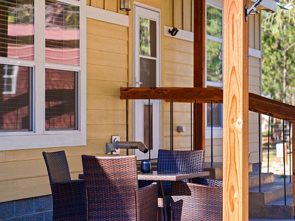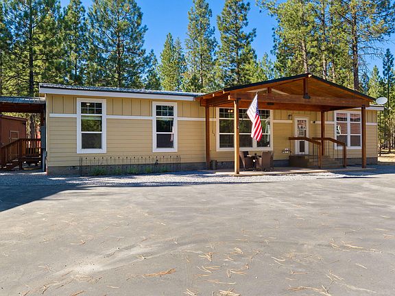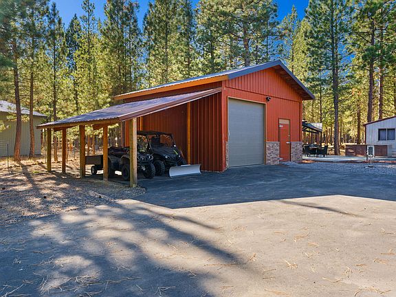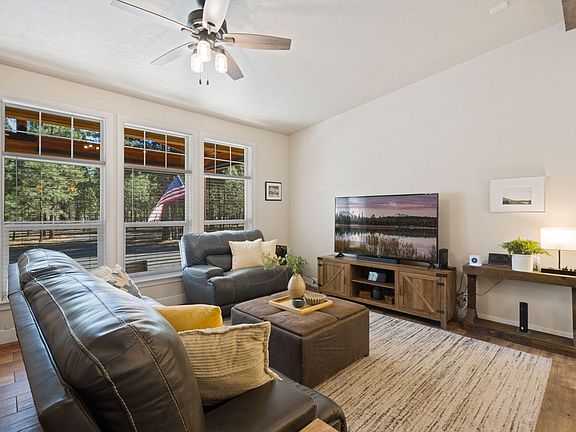 Welcome to your serene sanctuary. Nestled on a quiet 1.2 acre parcel in the Ponderosa Pines community, this custom home artfully blends forest living with thoughtful design. Spanning 1,680 sf & constructed in 2020, the open floor plan seamlessly connects the living, dining & kitchen spaces, ideal for both everyday comfort & entertaining. This single level home has versatile spaces, perfect for a home office or a guest room and a bright & inviting atmosphere with abundant natural light. The primary suite features vaulted ceilings & dreamy spa-like bath. Abundant storage, including large, walk-in pantry. Outside, an oversized garage/shop await, along with a separate structure for RV storage w/hookups. Delight in warm evenings on the oversized patio with pergola or in the private hot tub & enjoy the ease of rural living with paved roads, year-round maintenance, & a low-cost HOA. Embrace quiet mornings under whispering pines & recharge your spirit in this unique forest hideaway.