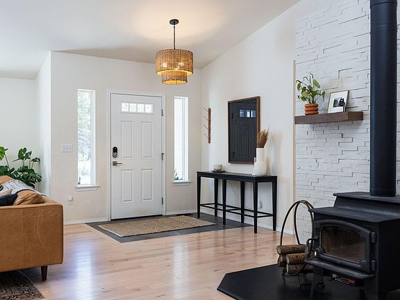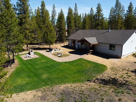 Incredible, spacious and private property + light and bright, inviting single level home situated on 4.88 acres, near forest land with loads of trails!! Beautiful upgrades to this 3 BR + 2 BA beauty with nice master separation, accent walls, all new lighting, hardware, faucets, bathroom mirrors, landscaping, firepit area, fully fenced dog run. Kitchen boasts open shelving, granite counters, stainless appliances, so much sunlight. Beautiful hardwood maple floors throughout. Covered back porch! Enjoy the best of Central Oregon living with trails right out your back door that take you all the way to Wickiup, a chicken coop, wood shed for the wood stove to keep you toasty all winter, and plenty of room for a shop! Brand new HVAC system w/heat pump and furnace. Plenty of room for everyone and all the toys!!