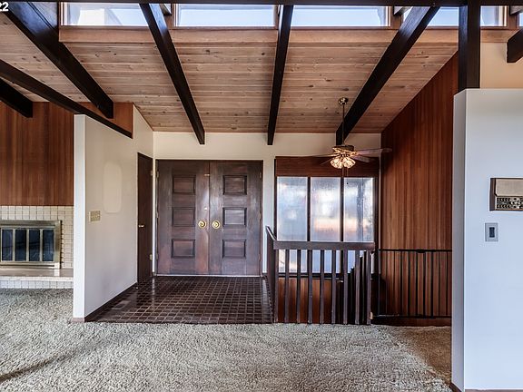 So, so much to love here: location, style, lot size to name a few. Mid century modern feel with the open, vaulted, beamed, tongue & groove ceilings. Open kitchen design with upgrades including double oven, cooktop & countertops. Primary bedroom on the main. Lower level family room is perfect for gatherings. Plumbed for wet bar. All original woodwork! Great views from the deck & patio, RV parking. You really need to come check it all out!