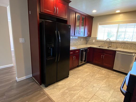 Welcome Home! This is your chance to rent a beautifully updated 4 bedroom 2 bathroom home in a wonderful neighborhood with excellent schools. Features include updated kitchen with granite counters, new kitchen cabinets, wine fridge. Two tone paint inside and out plus new hardwood flooring. Formal living room with marble wood burning fireplace. Lots of space for your growing family. Generous master suite with modern, updated bathroom. Large yard with great curb appeal and white picket fence. Extended living room (additional 300 sq ft) and brand new A/C makes for a great private office or exercise room. Private gate to this open space makes it feel like a second back yard! Excellent schools. Available now. Owner pays for Garbage and Landscaping. Refrigerator, Washer and dryer included.