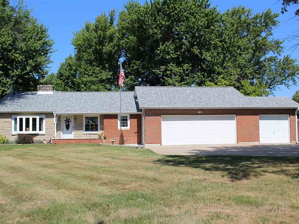 County living at it's best!! Enjoy sitting on your private 10x22 back patio overlooking trees and an open field!! With no neighbors behind, this peaceful 1 acre property is one-of-a-kind! This well maintained 3 bedroom brick & stone ranch home features a 7x12 front porch, 1 1/2 baths plus an additional shower in the basement, laundry chute, bay window and stairs leading up to a partially floored attic for convenient storage. The lower level already has a 15 x 38 living area with carpeting & 2nd fireplace that could easily be finished for additional sq.ft. plus an 11x24 laundry room and a 13x15 utility/workshop area. Eat-in kitchen with plenty of oak cabinets, counter space and bar area. The finished 2-car attached garage has a bonus attached utility garage (12x12) with an over head garage door. New roof, gutters & soffits in 2015, new furnace & AC in 2010 & updated windows.