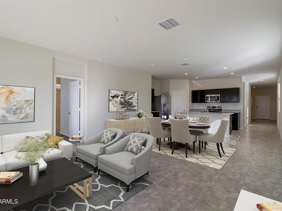 Est Completion 9/24/2024! The Matterhorn. A useful, covered front porch and interior foyer welcome you into this spacious 3-bed floorplan. Front hallway leads to 2 secondary bedrooms, a full bathroom, and the laundry room. The coat & linen closets provide extra storage space. Main living space is open and inviting, offering a seamless Great Room & Dining Room. The kitchen is complete with a corner pantry and island with additional space for seating. Master bedroom is situated at the back of the home & offers a sizable walk-in closet. Smart Home Package, garage door opener, rain gutters, and front yard desert landscaping also included! AMAZING AMENITIES! This fantastic community offers a fitness center, community pool & spa, walking paths, basketball courts, and soccer fields.