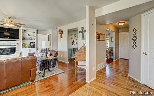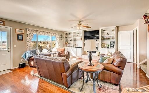 Located in the desirable Antelope Creek subdivision and this home shows pride of home ownership! The upper level consists of a master suite with updated master bath plus three more spacious bedrooms and a full bathroom . The kitchen has newer LG stainless steel appliances, granite counter tops, wall tile, and light fixtures.The basement has an additional bedroom with a custom Murphy bed, 3/4 bath, custom cherry wood bar, cherry wood built in shelves with cozy family room fireplace, theater room with 7.1 surround sound. The large backyard has a 12 X 16 outbuilding with electricity and heater, trex deck, stamped concrete patio, concrete edging, and additional 8 X 10 storage shed. Additional updates: Exterior Painted (2013), New Garage Door (2013), A/C and Whole House Fan. This home is located within walking distance to schools and is close to parks, hiking trails, shopping and dining and convenient access to I-25 and the Powers corridor