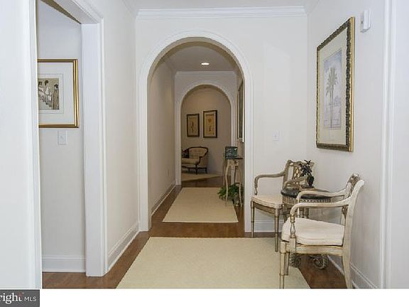 Situated in a premier, sunny, southwest location, just steps from the clubhouse, this corner home (2480 S.F., Furness Model)) with 2 bedrooms, 2 1/2 baths, a den, and a terrace, offers a spacious, open floor plan. This gracious, neutrally appointed condo with unique architectural details features: An inviting gallery entrance with arches; a Living room with coffered ceiling, entry columns & gas fireplace; a Gourmet Kountry Kraft kitchen; a Master bedroom suite with bay windows, dressing room with two walk-in closets, en suite bath with heated marble flooring; Guest suite with private bath; Generously sized den/office with built-in cabinetry and double window; Terrace overlooking the community garden with views of Haverford Reserve. One designated parking space & storage locker in the underground garage are included. Residents of this 55-plus lifestyle community enjoy exclusive use of the clubhouse which features a fully equipped fitness center, conference room, game and party rooms, and a heated outdoor pool with hot tub. Also, take advantage of the on-site tennis courts, putting green and walking trails. There is a $2,912 Capital Contribution fee and a $500 move-in fee. Plus a $250 refundable security deposit and a $100 new account fee. Showings begin Wednesday, September 6th.