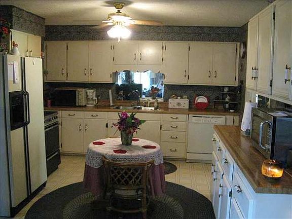 Take advantage of this two bedroom three bath house at a great price. It is sitting on a one acre lot with plenty of shade. There are two storage buildings located behind the house. The living area is spacious enough to accommodate any furniture arrangement. Kitchen is roomy and full of cabinet space. Formal dining is conveniently located next to the kitchen.