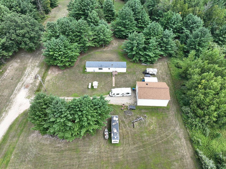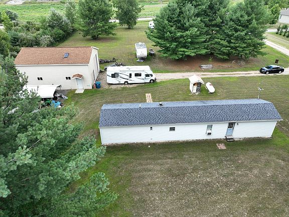 Modular home on 6.23 acres with pole building, across street from Wixom Lake.
