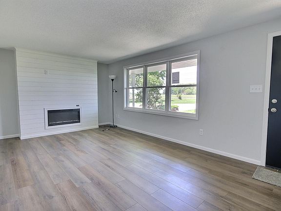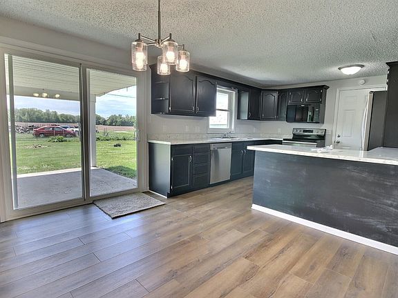 Enjoy serene country living on this .6-acre lot with sweeping rural views! This beautifully updated home features a newer roof, siding, and replacement windows, along with fresh paint and luxury vinyl tile flooring throughout. The completely renovated bathroom and updated plumbing and lighting fixtures add modern comfort. The spacious kitchen offers stainless steel appliances and an abundance of cabinet storage. Outside, you'll find an oversized 2-car garage, multiple sheds for extra storage, and mature trees that enhance the natural beauty of the property. Move-in ready and full of charm!