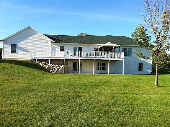MUST SEE! Beautiful country home resting on 6 acres. Home features Jenn Air stainless steel appliances, custom cupboards throughout the home. Master bedroom has huge walk-in closet with on suite bathroom. Cathedral ceilings in living area with Anderson windows throughout the home. Main floor laundry has Maytag washer and dryer. Lower level walkout features family room, 2 bedrooms, and full bath. Separate entrance for lower level access through garage. Beautiful Choice Dek Premium decking overlooking the spacious backyard. Property includes a 44 x 36 ft. pole barn with a 12 foot overhang, 3 garage doors, heated and insulated, fully functional bathroom. This home is beautiful! Call for a showing today!!