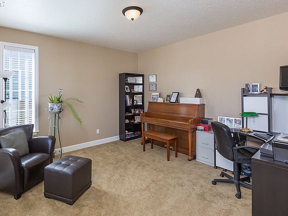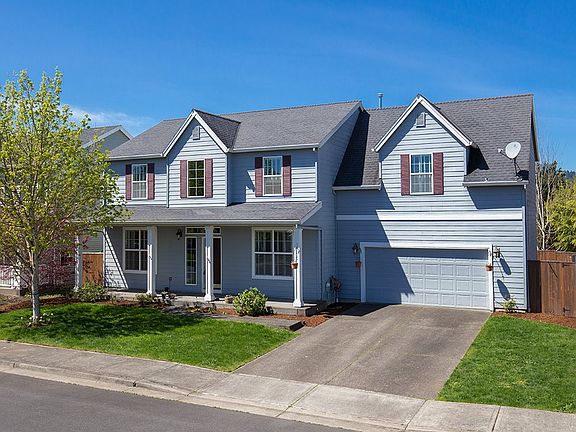 This newer Scappoose home has been well cared for and offers a spacious floor plan with 2549 SF, formal living room/dining room, bamboo floors, kitchen with tile counters, gas range and eating bar, open to the informal eating area and family room with gas fireplace. Master suite with skylight, double sinks & relaxing soaking tub. Huge bonus room upstairs with nice built-ins. Located in a newer neighborhood with fenced yard, sprinklers, gazebo, and only 30 minutes to Portland/Beaverton!