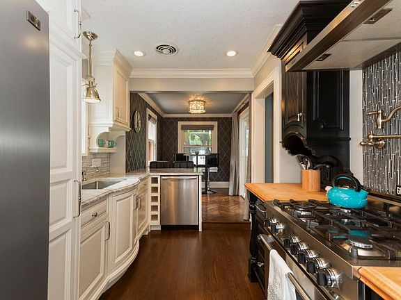 Beautiful, fully updated craftsman tudor in highly sought after, South Minneapolis Hale neighborhood. Three bedrooms, two full bathrooms, attached garage. Gorgeous, custom kitchen cabinetry with gourmet appliances, marble counters, and faucet over range. Breakfast nook area with counter seating overlooking expansive back deck. Upper level master bedroom with expertly crafted cabinetry and a beautiful bathroom with amazing claw foot tub, an extraordinary tile, step-in shower with dual rainwater shower heads. Separate dining room, wood burning fireplace in living room, mature landscaping, electronic gated access to driveway. Excellent access to Lake Nokomis, Minnehaha, shops, restaurants, schools and both downtown areas.