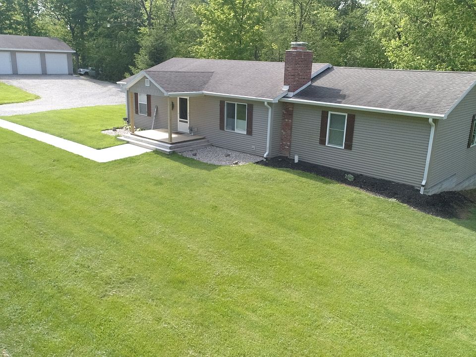 THIS IS A MUST SEE!! 5 BD 3 BA with Walk-out Partially Finished Basement on 10 ACRES of GORGEOUS Country Living! Completely Remodeled in 2006 with NEW Wiring (200 AMP), Plumbing, Drywall, Windows, Hardwood Floors, and Roof. Gourmet Kitchen (2016) with Vaulted Ceilings, 42" Cabinets (Pull-out Drawers and Soft-Close), Quartz Countertops, Gas Range with Hood Vent, and Two-Tiered Center Island; perfect for Family Gatherings. Spacious Primary Suite with Vaulted Ceiling, 14x8 Office/Sitting Area, Walk-in Closet, Double Sinks with Granite Countertops, Large Walk-in Tiled Shower with Dual Shower Heads, and Heated Whirlpool Tub. Continue Downstairs to the Basement Family Room, Two Bedrooms, Full Bathroom, Laundry, and Storage Area! SAVE on Utilities with the Whole-House Fan and Wood-Burning Stove (connected to duct work). NEW Propane HVAC (2023). 32x40 Outbuilding with 100 AMP Service and Lean-to Off Back. Relax out back on the 17x10 Screened-in Back Patio or 12x12 Covered Porch overlooking all nature has to offer here! Outdoor Seating and Firepit Area. Fenced Area with Apple Trees and 1 Pear Tree in the Middle of the Property. 3-4 Tillable Acres. Deer and Turkey on Property. Fiber Internet.