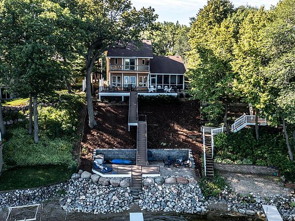 Incredible location and views on the shores of Lower Prior Lake. This 4 bedroom 3 bath lake home offers great spaces to entertain and shows exceptionally well. The home features a brand new shoreline, vaulted living room w/gas fireplace, brick surround and wood beam mantle, spacious family foom with panoramic views, new washer/dryer, completely remodeled master bathroom w/Volakas marble, modern sinks, rainfall shower, heated floors and floating vanity. The yard offers new landscape, a 1500 sq ft maintenance free deck overlooking the lake, fire pit patio, parking pad for a boat/trailer, a 21x12 screened porch perfect for MN summers, ample parking and storage/closet systems. Walking distance to Lakefront Park, trails and downtown Prior Lake.