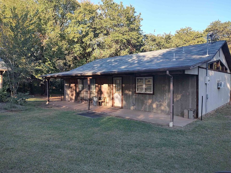 Selling 'AS IS'. Lots of potential for this open living floor plan. Ready to add your personal preference on decorating. Galley kitchen with stove and dishwasher. Cement floors ready for your choice of flooring. Storm shelter. Detached 24x32 garage with garage door opener plus interior walls have sheetrock. Watch the wild life on the 5 acres with lots of trees. Check out the aerial view to appreciate the lot. Call Brenda for showing today at 580.251.0278.