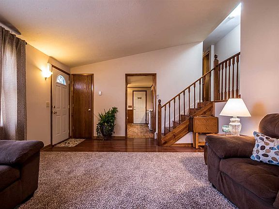 Check out this 3 bedroom home with A LOT of recent updates. The large main floor living area has vaulted ceilings with brand new carpet and paint. Kitchen has wood lam flooring and all appliances stay! In the lower level there is a large second living area/family room with brand new carpet. Wood burning stove in family room has blower that helps keep the rest of the house warm and saves on utilities. Washer and dryer stay as well in the oversized laundry/mud room. Enclosed porch/3 season room leads to the nice sized backyard with chain link fence and storage shed. 2 car attached garage has attic pull-down stairs with plenty of room for extra storage. NEW WINDOWS and NEW ROOF in Spring 2016. Neighborhood has walking/bike path that connects to the new Y on St. Joe Center Rd. Three window AC units stay with the home. Great location close to shopping, dining and schools!