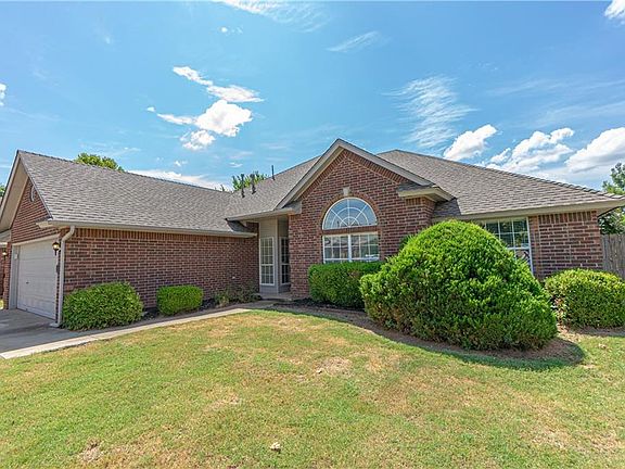 STUNNING LAKEFRONT HOME in one of Norman's most sought-after west side neighborhoods: Cambridge. Nestled in a quiet cul-de-sac and on the greenbelt of Cambridge Lake, it is just one of eight homes eligible for private dock installation. You can walk to the city park, 10 Mile Flat Creek, or cast a lure in the stocked lake in under 60 seconds. Large covered back patio, low maintenance yard and landscaping. Upon entry, you'll immediately de-stress experiencing gorgeous picture window views of the water. Vacation-style living in a well-kept home, inviting for guests. Split bedroom floor plan. Open kitchen, dining, living. Two-sided fireplace for living room and den. Kitchen features gas cooktop island, breakfast bar, and space to cook together. 2 Dining areas. Natural light throughout without imposing direct sun. Master suite: private patio door, updated bathroom with custom tile shower, vaulted ceilings, and individual dual walk-in closets. RELAX, REJUVENATE, and ENJOY #CambridgeLiving!