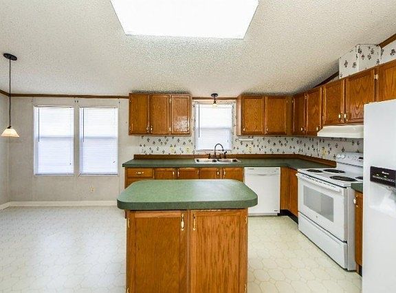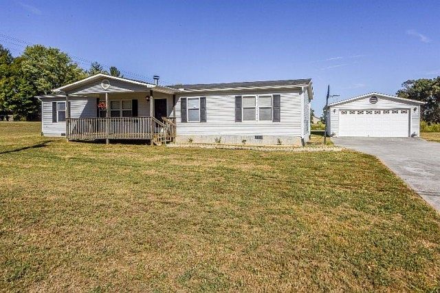 Move in ready, New Carpet, Heat & Air is newer and still under warranty , updated appliances, wonderful open plan with a permanent foundation & 2 car detached garage. Why rent when you can own!