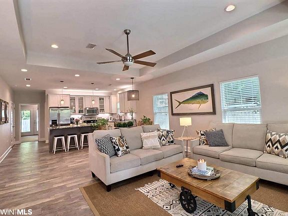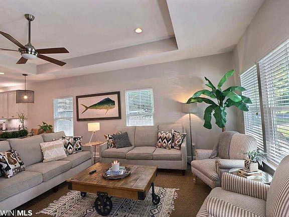 Bring your BOAT! Beautiful one story 3 bedroom 2 bath home is located in East Orange Beach Subdivision. Amenities include Bay Access,boat ramp, beach area and picnic areas for $195/yr fee/voluntary. Close to OB Rec Center, Elem. School, and Beach. This 1500 sf home is built strong with Gold Fortified Certification keeping insurance costs low. Home features an open/split floor plan, 9' ceilings, 10' trey in Living rm, high impact windows & doors, recessed & pendant lights. Floors have carpet in bedrooms; Driftwood-look Porcelain Tile elsewhere. Kitchen w/large island & pantry, granite counters, SS Maytag appliances including refrigerator. Smooth painted Maple wood cabinets. Tiled walk in-shower & large 5x10' closet in master. 10x16 storage shed matches home w/extra space for golf cart. Stone patio off back porch is ready for entertaining any time of the year. Plenty of space for seating, grilling and permanent fire pit is super inviting. Lot size60'x140'x50'x140'. Floor ELEVATION = 11'3" well above FEMA base flood elevation of 6'. All info deemed reliable but to be verified by Buyer or Buyer's agent.