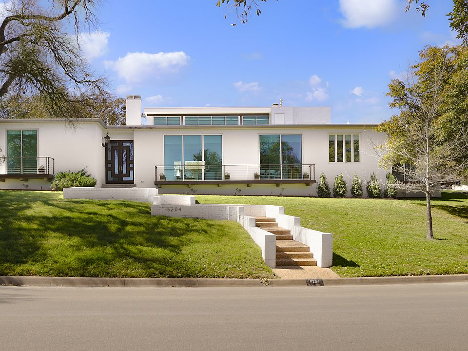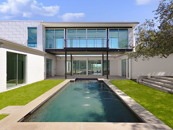 Nestled minutes from downtown Austin and Lady Bird Lake, this 1964 architectural gem blends mid-century elegance with contemporary luxury. Step inside to discover original terrazzo floors beneath soaring ceilings and walls of glass framing picturesque views. The gourmet kitchen showcases a 48" Blue Star range, SubZero refrigerator, and Miele appliances around a marble island with quartz accents. The primary suite features a skylight, double-sided fireplace, bespoke walnut closet, and meticulously remodeled bath. Upstairs, floor-to-ceiling windows capture city panoramas, while sliding glass doors overlook the sparkling poolperfect for a home office or creative studio. Set on .46 acres, this residence offers rare urban privacy with its pool, expansive grounds, and majestic Texas Oak. The floating architectural addition by Stan Haas of the Long Center restoration project creates a distinctive entertainer's paradise in the heart of Austin's vibrant cultural scene.