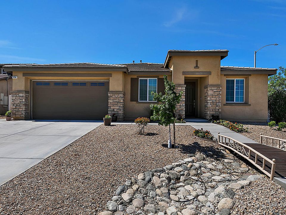Beautiful single story 4 Bedroom, 3 Bathroom home on a corner lot, cul-de-sac location, close to schools, shopping and parks. Former model home built in 2010, has quality finishes: Granite counters, Hardwood and Tile flooring and low maintenance Zeroscape front and backyards. Open floorplan in kitchen, dining and living room makes entertaining a breeze. Extend the party to the fully completed backyard, with concrete in the back and side yards, complete with gazebos and storage shed. Master ensuite is light and bright with fully updated bathroom. Separated bedroom with full bathroom gives guests full privacy. Attached 2 car garage allows direct access through the indoor laundry room. This upgraded home has been lovingly maintained and is move-in ready!