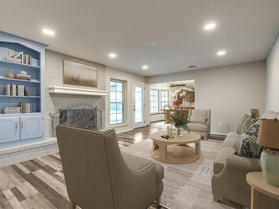 - Description: Bookcase,Built Ins,Family,Family/Den,Fireplace,Living Room,Remodeled
