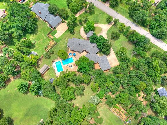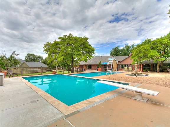 ** 2 SWIMMING POOLS ** HOT TUB ** 1.37 ACRE LOT ** POSSIBLE 6 BEDROOMS ** EDMOND SCHOOLS!!! DIVING/SWIMMING POOL with new diving board and newly resurfaced - 10ft deep and great for jumping, diving and lap swimming. SECOND POOL is a SPORT POOL with slide - perfect for volleyball, basketball, Marco-polo and all your favorite pool games. The grounds are picturesque and relaxing with over 55 trees, multiple patio spaces, fire pit, Trex deck area, fenced dog run, garden areas and 24x12 outbuilding. PARKING AND MORE PARKING! - with the large driveway, circle drive, PORTICO, and extra parking near the garage - you can invite the "whole town" to your Pool Party, they can all drive separately, and still have parking to spare! Recent updates include: New quartz countertops, new tile backsplash, new coping on diving pool, new pool/spa heater 2024, New carpet at living and dining 2024, New septic system 2022 and much more - ask for full features list. Flexible floor plan - see floor plan in photos - study could be bedroom 5, and theater room could be bedroom 6. Large living room with vaulted ceiling. Formal dining could also be used as a den or pool table room. Sun room adds even ADDITIONAL living room. Come see this one today!