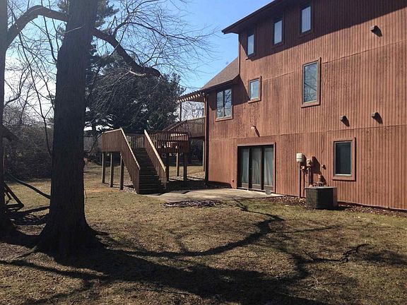 A unique 2-1/2 story, 5-bedroom, 3-bath home located, within the Woodlands of Riverside, in the NE quadrant of Fort Wayne. Walk-out basement features include large masonry fireplace with gas log insert, custom oak cabinets, and large finished room currently in use as 5th bedroom. Shaded rear yard with 14 X 16 open concrete patio and multi-level wooden deck connecting to an eat-in kitchen area overlooking the rear yard. High ceilings and many windows on the main floor living area effectively transform the space into an airy and well-lighted room. Master bedroom's en-suite bath features a deep garden tub.