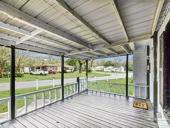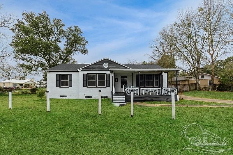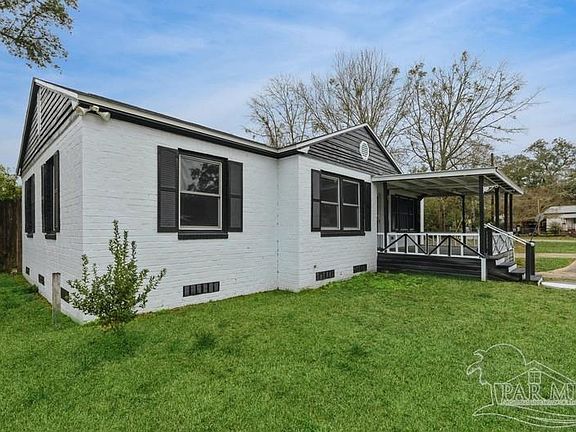 This lovely house located on a corner lot is located just a few hundred yards away from the public boat launch at Marquis Basin, making it an ideal spot to bring your favorite water toys like jet skis, paddleboards, fishing poles, and boats. You can easily access the bayou or Blackwater River from the basin and there is plenty of yard space to store all your gear. Relax and enjoy the refreshing breeze on the covered porch or take an evening stroll to watch the stunning sunsets over the water. This move-in ready home features three bedrooms, one bathroom, a new roof, updated electrical wiring to copper, updated windows, and plumbing. There is also a spacious indoor laundry room with ample storage space. Adjacent to the kitchen, the room can be used as a dining area or home office. Only 6 miles to I-10 (interstate 10). Don't miss out on this charming home, it's a must-see!