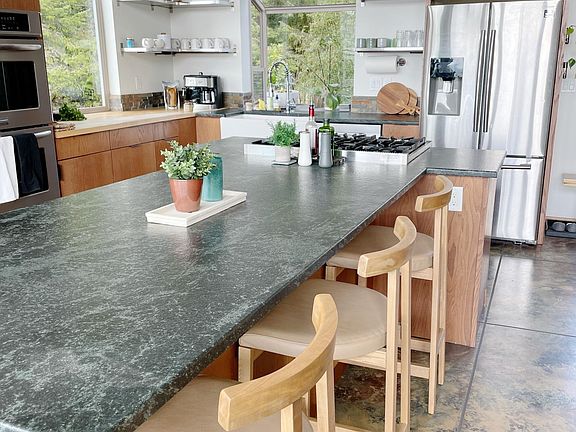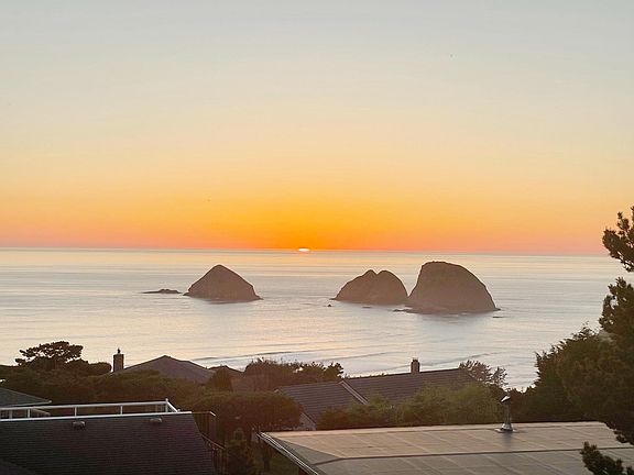 Step inside the glass front door unveiling a picturesque view of the Three Arch Rocks in Oceanside. The great room includes magnificent floor-to-ceiling windows and an open concept kitchen+dining+living area that is perfect for entertaining with lots of different seating options, a propane fireplace, tons of natural light and an extraordinary kitchen featuring double waist-high ovens, Viking stovetop, Italian porcelain large sink overlooking the front garden. Walk onto the 450 square foot deck for dining, laying in the sun or just enjoying the view. The deck also connects to the enormous master bedroom which includes a 14' long headboard, designer furnishings including swivel chairs and a chaise lounge and large like new TV. Motorized shades in the living room and master provide quick shade support in beautiful fashion. The master connects to a private en suite bathroom with multiple fixtures in the large tiled walk-in shower. A separate bathroom on the main floor provides another tiled walk-in shower alternative with a steam room recently installed. A hallway leads to the garage which includes a washer and dryer and utility tub.