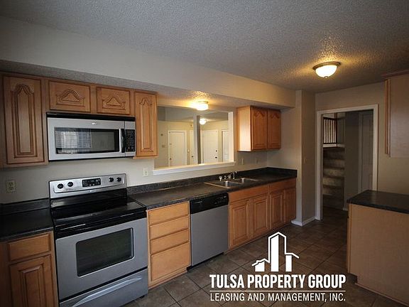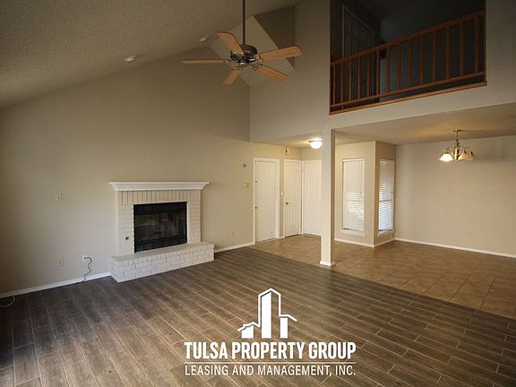 Spacious South Tulsa Home!Three Bedroom- Two Bath- Two car garage- Living room has fireplace- Kitchen equipped with stainless steel range and dishwasher- Master suite downstairs- Master bath has dual sinks and large walk-in closet- One of the upstairs bedrooms is open and overlooks the living room- Bonus room/office space upstairs- Fully fenced backyard with patio