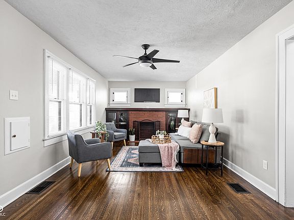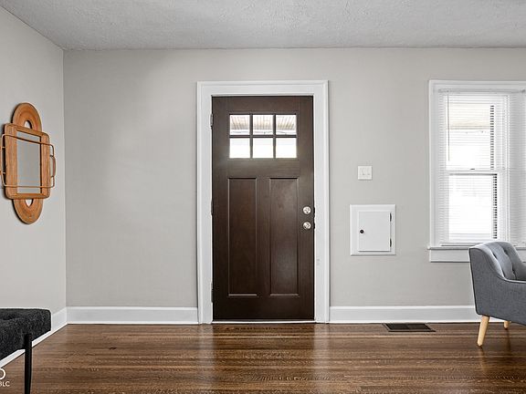 Just steps from Ellenberger Park, this buttoned up Irvington bungalow invites you in with its welcoming covered front porch, complete with a porch swing and decorative lighting. Inside, the newly refinished original hardwood floors greet you, adding warmth and character that flows throughout the home. The spacious living room features a fireplace flanked with built ins as a charming focal point, and leads into the centrally located dining room. The thoughtfully renovated kitchen showcases sleek granite countertops, brand-new stainless steel appliances, all-new fixtures, and fresh flooring, plus a sweet breakfast / coffee nook. The bathroom is equally impressive, boasting crisp tilework, a marble vanity, and updated flooring, offering a bright, modern touch. The recently refinished attic provides an unexpected flexible space, ideal for a play room or a tranquil hideaway. The tidy basement, with new glass block windows, offers both practical storage and functional space. Outside, you will find refreshed landscaping, a fully fenced backyard, and a one car garage. Every inch of this home has been restored with care. With all-new electrical and light fixtures, a new AC and water heater, a fresh coat of paint inside and out, and too many updates to list, this home delivers the charm of a historic house with the peace of mind that comes with quality, modern updates.