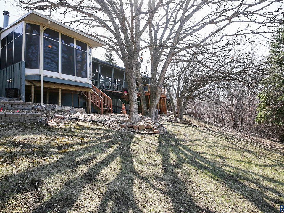 If you love cabins in the wilderness but want the convenience of living in a city, this home may be perfect for you. Feel like you're in the Black Hills enjoying your morning coffee with a view of trees and wildlife in this gorgeous townhome with unique architectural features. Many great windows to enjoy the beautiful view, as well as a 3-season porch that brings you right into the outdoors. There are no steps to enter the home and a large foyer area that features a stunning ceiling light fixture sets the stage for the rest of the beauty you'll find in this home. Over 2200 square feet, a recently updated kitchen with granite countertops, a wood-burning fireplace, and wood floors complete the cozy elegance. On top of that, let the HOA take care of the outside maintenance. You won't find a wilderness-type setting like this in and around Sioux Falls very often, so don't wait to see it!