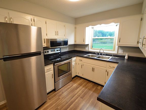 This remodeled ranch in a country setting on about an acre has 3 bedrooms, 2 full baths including a master bath, a covered patio, an attached garage, and a detached garage. It's on the east side of Fort Wayne, not far from New Haven! All appliances stay, including the stainless steel appliances in the kitchen as well as the washer and dryer! The roof is only about one year old, and other newer features includes the flooring (carpet, laminate, vinyl plank, and ceramic), vinyl windows, the entry door, and updated fixtures. The floor plan includes both a large living room as well as a family room with a fireplace. This home also features a partial privacy fence, with the fencing to complete it stored on site. The current owner preferred to look out from the covered patio to see the nature setting behind the property, versus looking out at the fence, so he took off the back panels. If you want to live without neighborhood restrictions, without stairs to climb, and with an outbuilding, this home is for you! Possession at closing is possible, the owner will consider leaving the living room furniture, and you can enjoy low taxes, with taxes payable in 2019 being under $900. Schedule an appointment to see this home today!