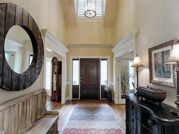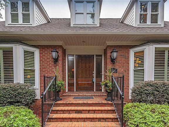 Golf course lot . This home has been completely remodeled . Brick patio and gazedo . Great for entertaining. 5 car garage . Room over second garage has a Theater Room/TV Room ,full bath, storage .wet bar. Great room has a stone fireplace and built in book cases .Open to a Sunroom .Living Room with french doors could be an office. Master Suite is on the Main Level with fireplace. Master Bath has beautiful Shower and separate vanities. Upstairs has 3 Bedrooms and bonus room and 2 baths. Move in ready.