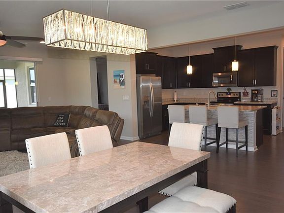 Beautiful family home located in Harmony at Lakewood Ranch. This 4 bedroom, 3 bath family home features an open living plan with 8' doorways throughout the home. Living/Dining room combination has wood plank flooring and opens to beautiful kitchen area, which features an island with seating, wood cabinets and granite countertops. The master bedroom has a tray ceiling and large walk-in closet. The master bathroom has a garden tub with large separate shower, dual sinks and granite countertops. The 2nd and 3rd bedrooms feature a very spacious Jack and Jill bathroom with dual sinks, shower and bathtub. The 4th bedroom is next to the 3rd bathroom, which also has granite countertops. This spacious home also has indoor laundry room with pre-plumbing to add a sink (current owners have put a 2nd refrigerator in this area). 2-car garage has epoxy flooring for a finished look. Home also has dual sliding doors off main living area that lead to screened in lanai and lots of privacy on this fenced corner lot. This community has lot of extras for active families including walking and biking trails, club house, play ground, resort style pool and more.