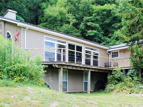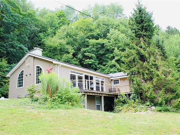 Country setting with approx.11 acres only 10 minutes outside of Ellicottville. A raised ranch that has been renovated inside and out in a 4 season resort area. Large living room with stone surround wood burning fireplace with wood ceiling and wood floors running throughout the dinning area. This area leads to the newly updated kitchen with appliances including dishwasher. Off the kitchen is 3 good sized bedrooms with a new bath The main entrance is off the back of the home with a nice entry way and large closet for storage. The lower level has a recreation room with 2 more bedrooms and another full bath with laundry area. A full deck is across the front of the home overlooking the pond on the extra acreage across the street being sold with the property. Entrance off the back of the home with a nice entry way and large closet for storage. There is a double shed with bunk area in the back for extra storage. Maintenance free siding, metal roof and newer windows is a plus for care free living. Have a look today.
