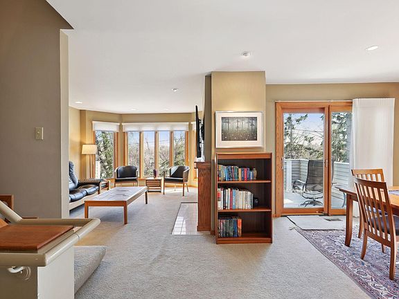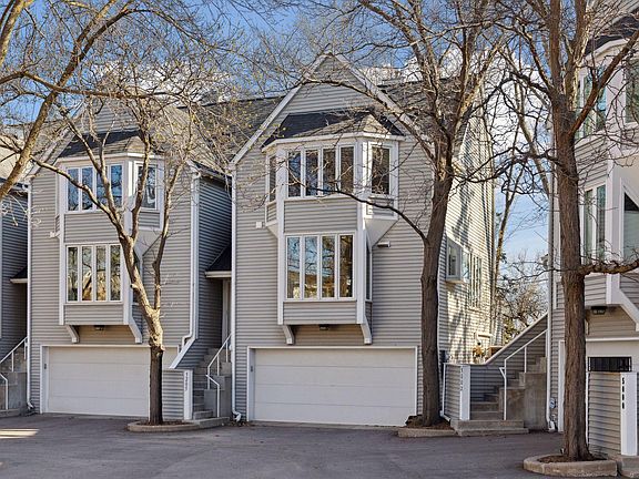 Welcome to this beautifully designed townhome by architect Milo Thompson. This 2-bedroom 2 bath charming townhome has a main level living room with gas fireplace and large picture window that looks out to the Minneapolis Skyline, the spacious main level dining room leads out to your private deck to enjoy morning coffee, the kitchen has an eat in dining nook, cork floor, granite counter tops, natural cabinets, and a wonderful wall pantry area. The 1/2 bath has been completely remodeled on the main level, there are 2 upper-level vaulted bedrooms. The primary bedroom has a 3/4 bath and vaulted ceilings. The second full bath adjacent to bedroom 2 has a new pedestal sink and heated towel bar. This is a must see! Home is in a prime location close to shopping, coffee shops and restaurants. Easy on/off Highway 100. Location is everything with this one!