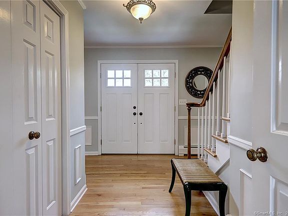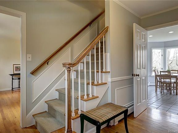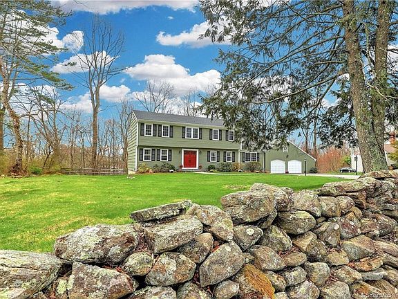 Discover this lovely Colonial nestled behind a classic stone wall located on upper Madison Ave close to the Tashua Recreation area with pool, tennis/pickelball & golf course. The wooded acre slopes off to the rear of the property which affords magnificent sunset views and privacy. Upon entering there is a traditional Living Rm and oversize Dining Rm w/HWD flanking the center hall staircase. The comfortable bright eat-in Kitchen includes white cabinetry, granite tops, and a cozy bay window in the dining area. The impressive Family Rm off the Kitchen features; vaulted ceilings, beams, white floor to ceiling brick Fireplace and newer engineered wood flooring with a slider to the large rear multi-level deck and fenced yard. An added bonus is the convenient 1st floor Home Office off the Kitchen. The updated 1/2 bath and laundry area are also on the main level. Upstairs you will find the MBR suite with remodeled full bath and walk-in closet. The 3 good sized bedrooms and full hall bath round out the upper level. Then you will be pleasantly surprised by the large walk out L/L Playroom plus a 2nd private office or multi-purpose room. And finally, you have a 3rd full bathroom which allows for potential In-Law. Many updates include newer gas boiler, central A/C, washer, dryer, driveway, paver walkway, split rail fencing, vinyl thermopane windows on the 2nd floor, basement & some on the 1st floor. All this close to shopping, schools, town recreation facilities and access to highways!