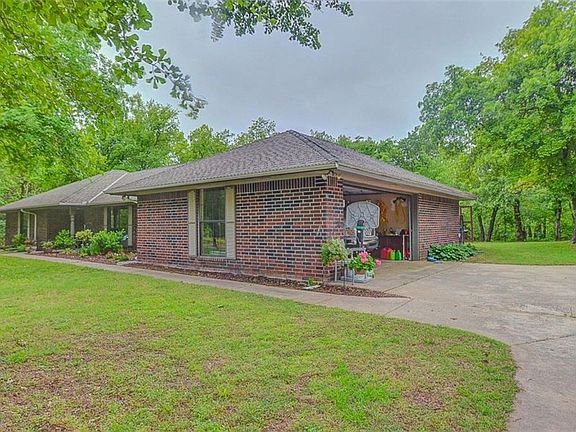 This home has everything! Two spacious living areas-main living offers a fireplace and 2nd living/office/library has three walls of shelves and cabinets - tons of storage in this home --all bedrooms have walk in closets - formal dining room for entertaining and a sun room for enjoying the warm summer nights (has heat and air)-- home is nestled on 2.5 acres with beautiful trees for privacy with a back patio perfect for relaxing or cooking out--the kitchen is beautiful with modern cabinetry, granite counter tops and stainless appliances--24' X 16' workshop/detached garage--garden spot and storm shelter-- ready to move in and enjoy --Come see this home today!